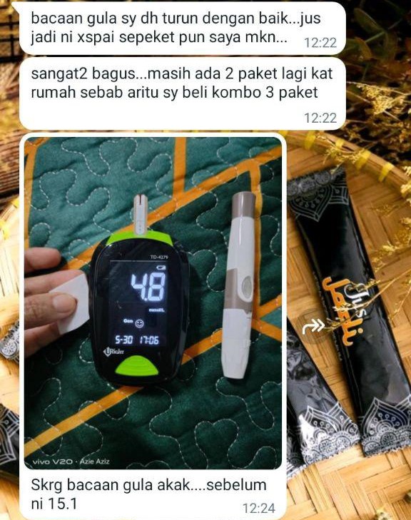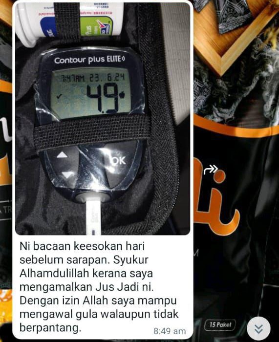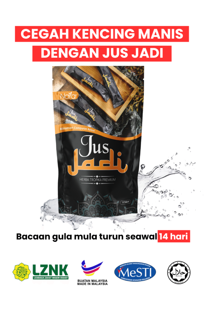 Jus Jadi dirumus khas untuk membantu menurunkan paras gula dalam darah, menyokong fungsi pankreas, dan melegakan simptom-simptom kencing manis seperti kebas, cepat penat, luka lambat sembuh dan mata kabur.