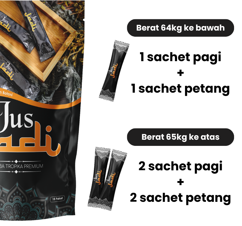 Berat badan 64kg kebawah ambil 1 sachet pagi dan malam.Berat Badan 65kg keatas ambil 2 sachet pagi dan malam. Disarankan untuk gastrik ambil lepas makan. Amal secara konsisten setiap hari.